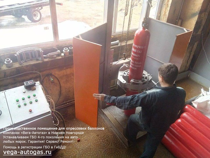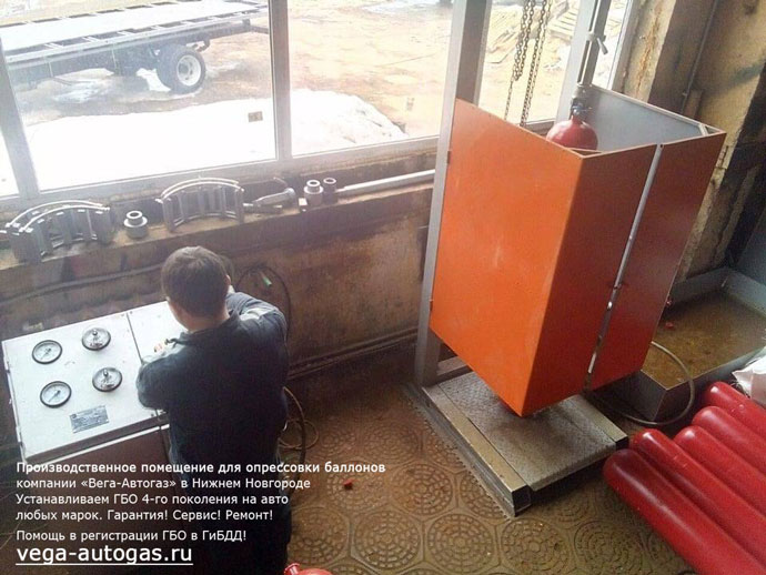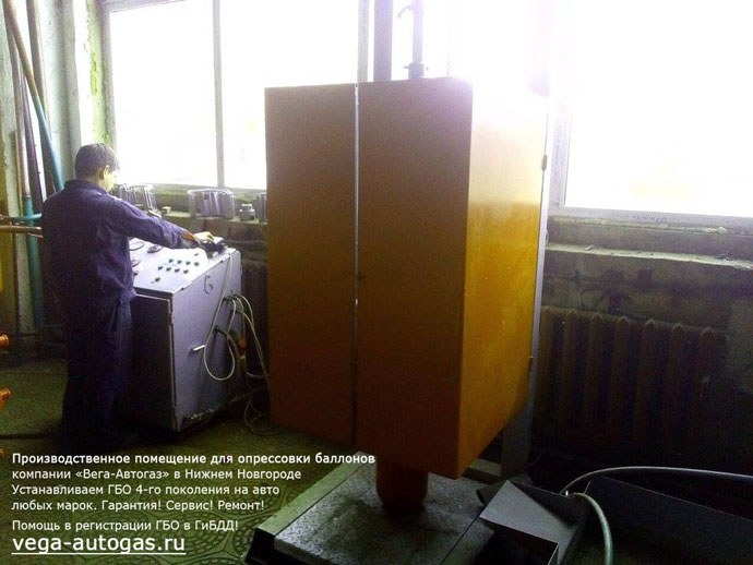 Производственное помещение сервисного центра "Вега-Автогаз" для опрессовки баллонов ГБО в Нижнем Новгороде