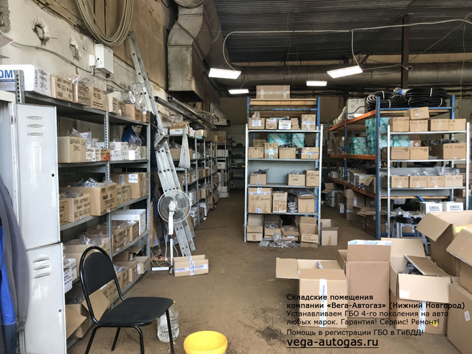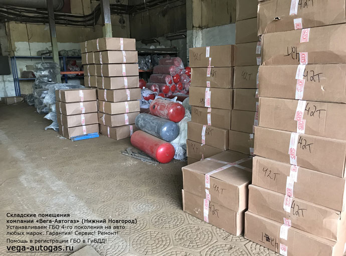 Склад комплектов ГБО, запчастей и баллонов компании "Вега-Автогаз"